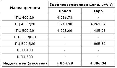 Цены на основные марки цемента составили: