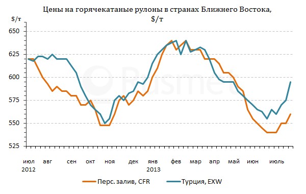 Наступление Рамадана, безусловно, способствовало снижению спроса на плоский прокат в странах Ближнего Востока. Большинство потребителей создали достаточные запасы еще в июне и первых числах июля и пока не приступали к заключению контрактов на сентябрь. Тем не менее, котировки в регионе повышаются вследствие роста цен на листовую продукцию в соседних регионах.