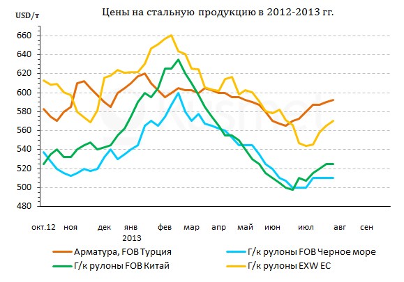 Правда, здесь значительную роль сыграл и сырьевой фактор. Турецкие металлургические компании достаточно спокойно приняли повышение цен на металлолом и заготовки, рассчитывая компенсировать их за счет увеличения стоимости готовой продукции в конце лета – начала осени. В результате металлолом и арматура усиливали друг друга, так что и та, и другая продукция в течение прошедшего месяца немного прибавила в цене.
